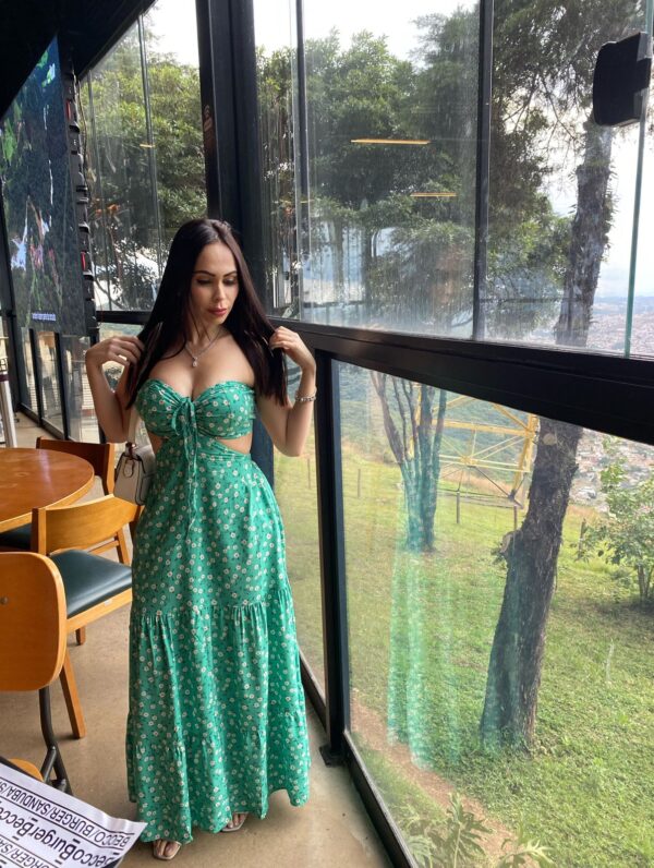 Vestido Longo Floral Verde Esmeralda Tomara Que Caia com Recortes