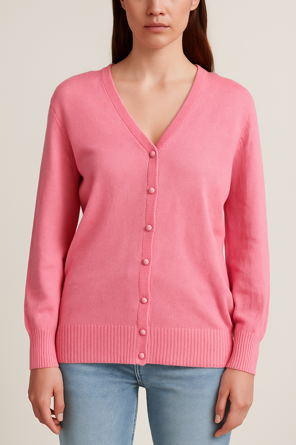 Blusa feminina em tricô canelado, com gola redonda e fechamento por botões frontais. Ideal para looks de outono e inverno, une conforto e estilo casual. Combine com jeans, saias ou peças de alfaiataria.