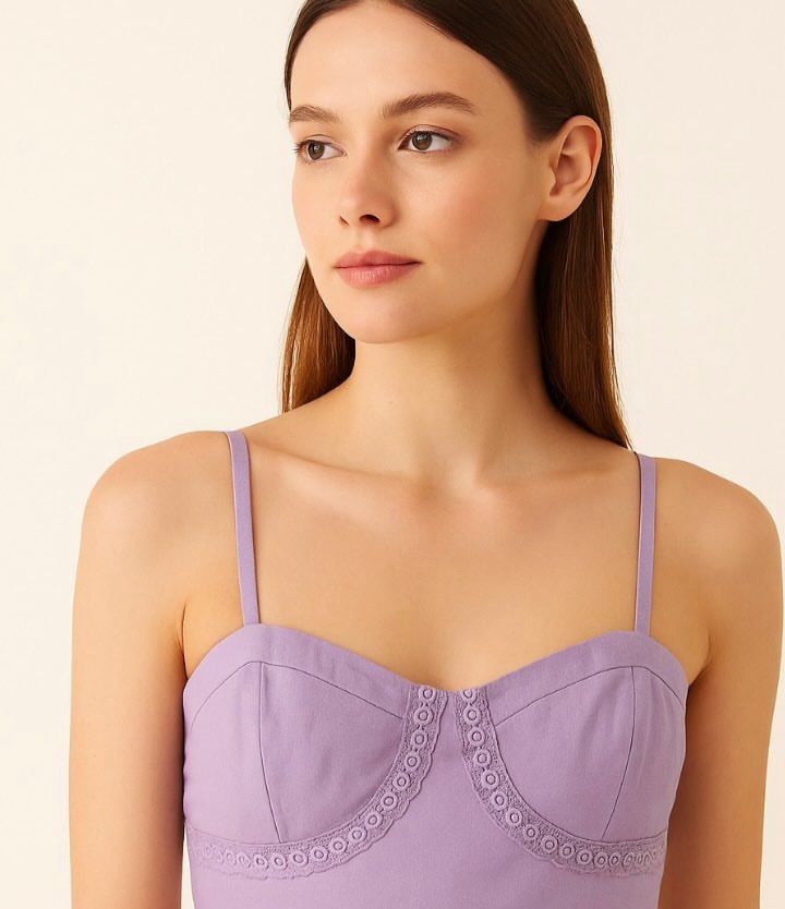 Cropped moderno com detalhes em lese que conferem elegância à peça. Ideal para looks despojados e femininos.