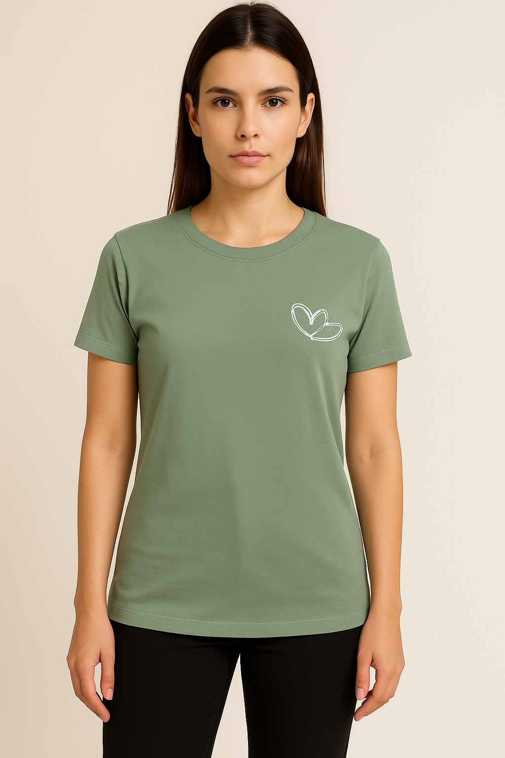 Verde com dois corações minimalistas no peito